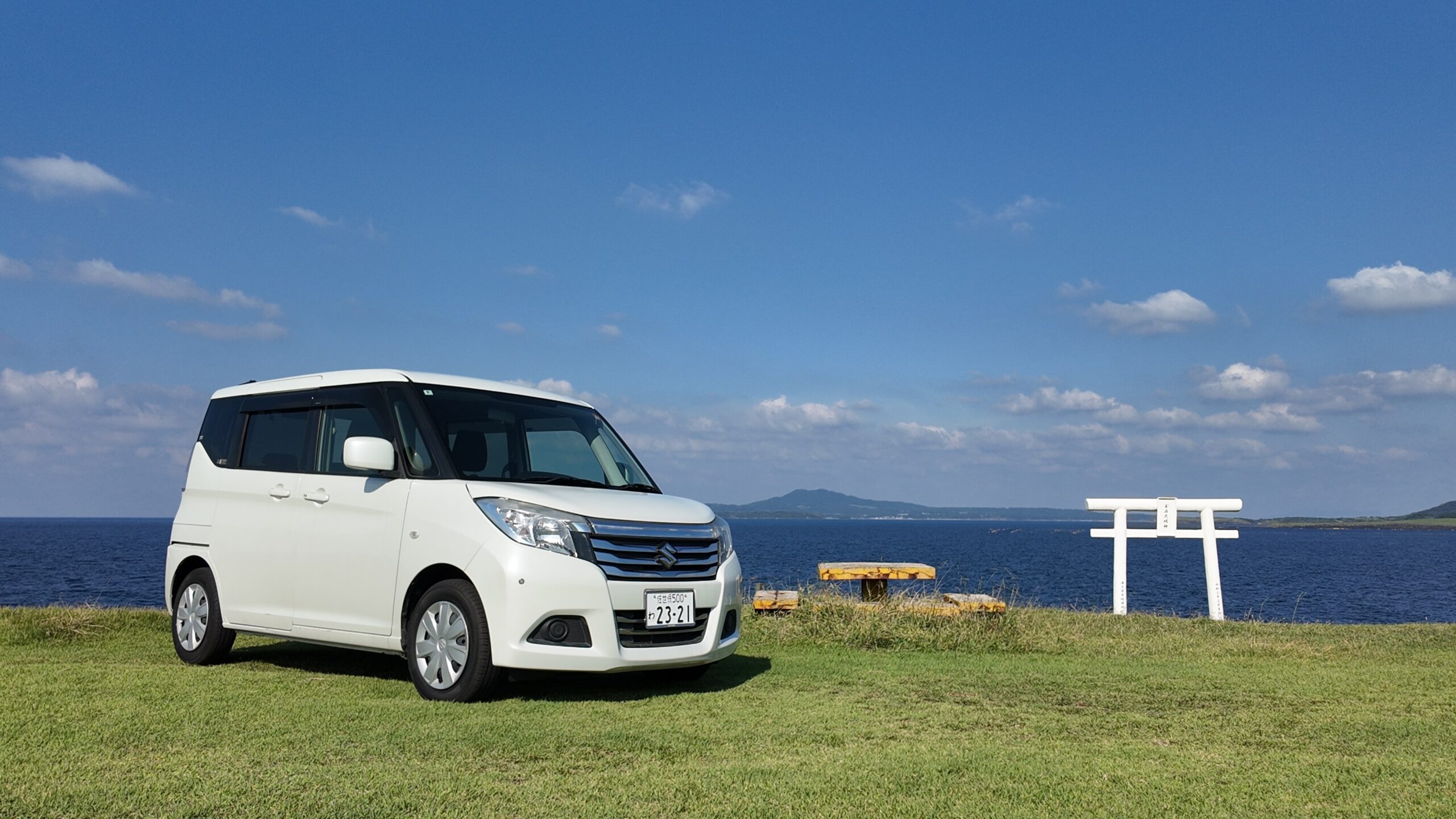 便利な車種:スズキSOLIO(定員5名)で、島の観光や荷物の多いビジネス利用にも最適。
